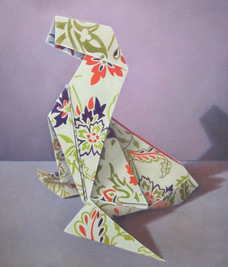 I have always had a fondness for beautiful paper. And for patterns. And for animals. All of this comes together in the series of paintings featuring origami animal figures. I also love abstractions; there is a world of difference between a painting of a seal and a painting of a piece of paper folded into the shape of a seal.
